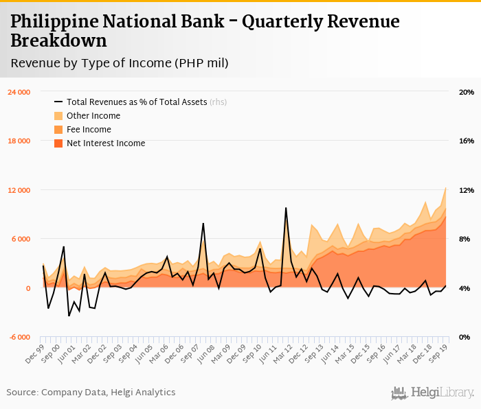 Philippine National Bank generated total banking revenues of PHP 12,218 mil in the third quarter of 2019, up 18.3% when compared to the same period of last year and 22.6% when compared to the previous quarter.