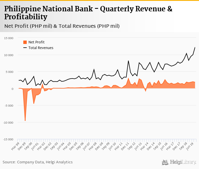 Philippine National Bank made a net profit of PHP 1,809 mil under revenues of PHP 12,218 mil in the third quarter of 2019, down 3.03% and up 18.3% respectively when compared to the same period last year.