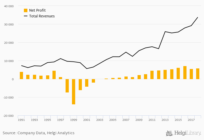 On the other hand, bank’s revenues amounted to an all time high of PHP 33,772 mil in 2018 and an all time low of PHP 5,594 mil in 2001. The average revenues in the last five years reached PHP 28,306 mil.