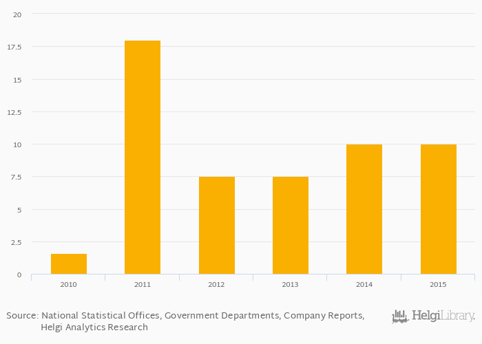 Historically, phosphate rock production in Mali reached an all time high of 18.0 kt in 2011 and an all time low of 1.60 kt in 2010.