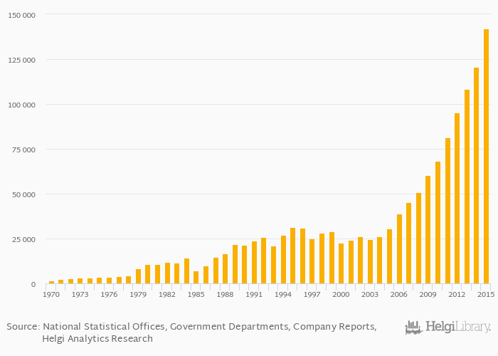 Historically, phosphate rock production in China reached an all time high of 142,039 kt in 2015 and an all time low of 1,700 kt in 1970.