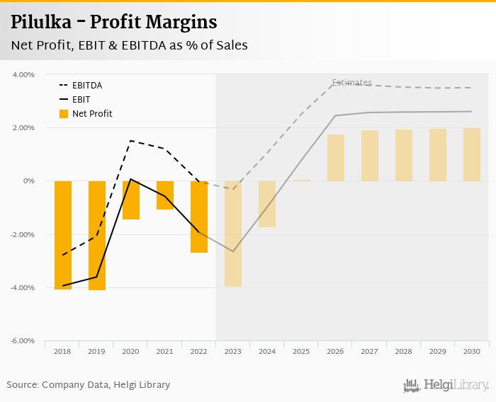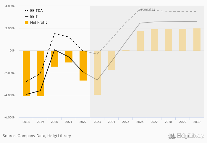 On the operating level, the EBITDA margin reached -0.030% and EBIT amounted to -1.93% of sales in 2022.