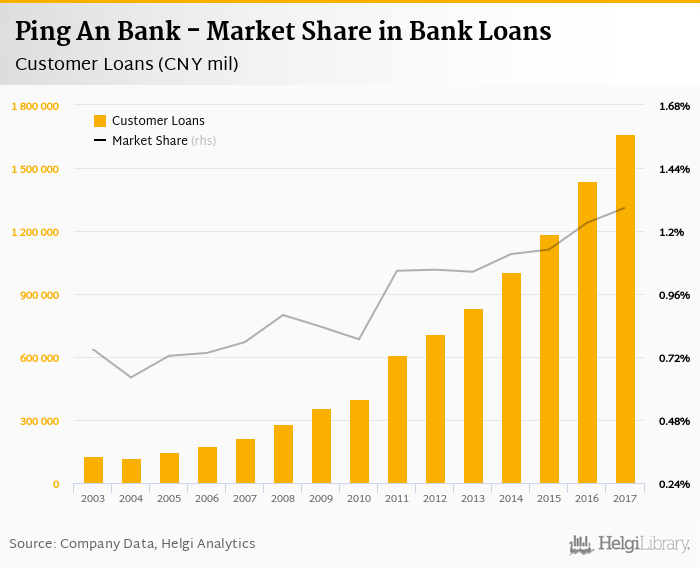 Ping An Bank's customer loans reached CNY 1,660,420 mil in 2017, up 15.6% compared to the previous year.