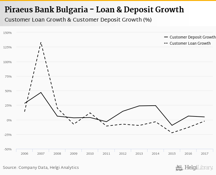 At the end of 2017, Piraeus Bank Bulgaria's loans accounted for 63.1% of total deposits and 46.6% of total assets.