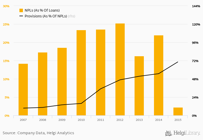 Provision coverage amounted to 70.4% at the end of 2015, up from 54.8% compared to a year earlier.