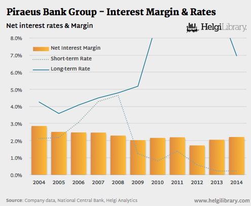 Bank's net interest margin has fallen from 2.85% in 2004 to as low as 1.72% in 2012 (measured on average bank assets). Since then, the margin has been growing to as high as 2.21% in 2014.