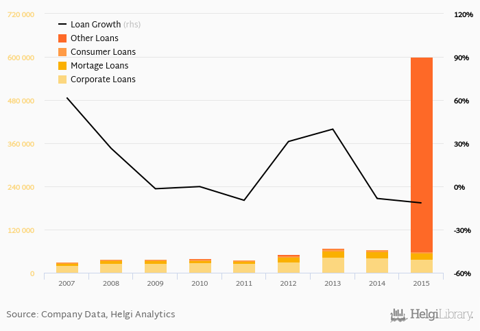 Mortgage loans represented 2.72% of the bank's loan book at the end of the year 2015, consumer further 0.711% and corporate loans 6.39% of total loans.