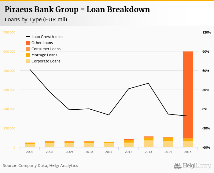 At the end of 2015, Piraeus Bank Group's loans accounted for 130% of total deposits and 57.8% of total assets.