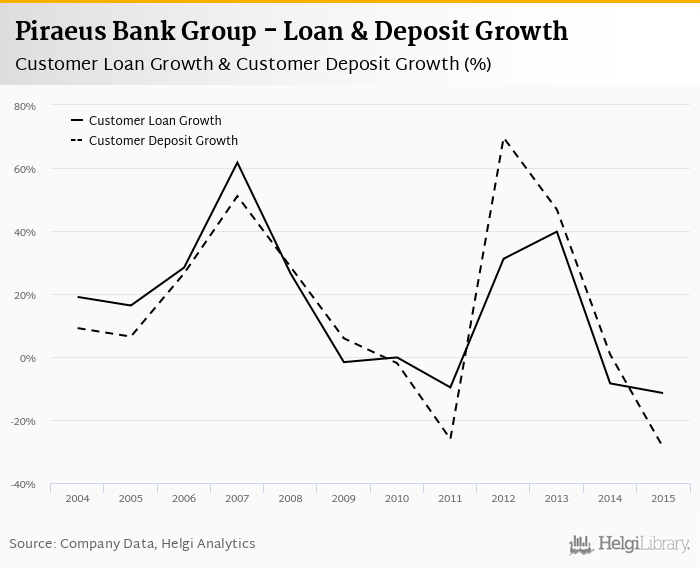 At the end of 2015, Piraeus Bank Group's loans accounted for 130% of total deposits and 57.8% of total assets.