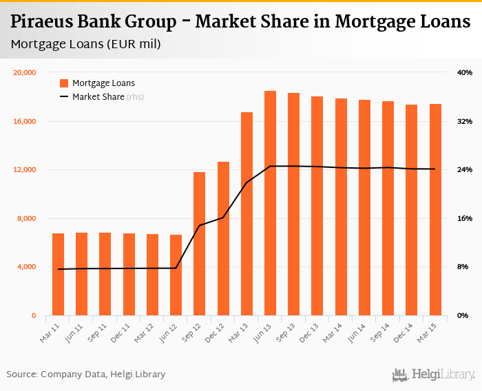 Piraeus Bank Group's mortgage loans reached EUR 17,429 mil in 1Q2015, up 0.105% compared to the previous year.