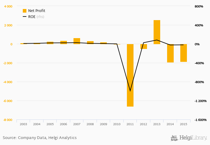 The bank generated its shareholders an average return on equity of -187% in the last five years with maximum at 81.3% and minimum at -992%
