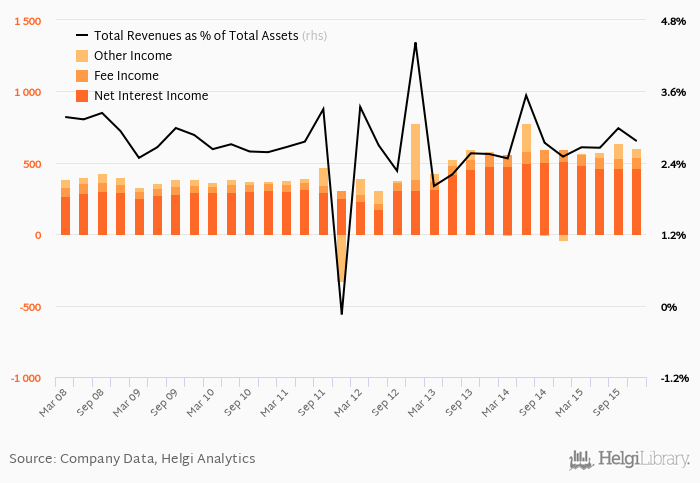 Net interest income represented 76.6% of total revenues, fee income contributed 13.0% and other non-interest income added further 10.4% to the overall revenue generation in 4Q2015.