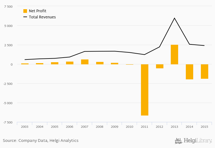 Piraeus Bank Group made a net profit of EUR -1,858 mil under revenues of EUR 2,393 mil in 2015, up 4.13% and -6.46% respectively compared to the previous year.
