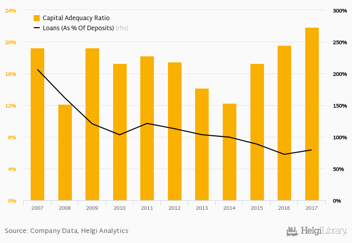 Bank's loan to deposit ratio reached 79.4% at the end of 2017, up from 72.4% when compared to the previous year. Some 10 years ago, loan to deposit ratio of the bank amounted to 206%.