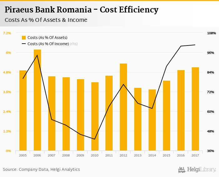 Piraeus Bank Romania's cost to income ratio reached 101% in 2017, up from 99.8% compared to the previous year.