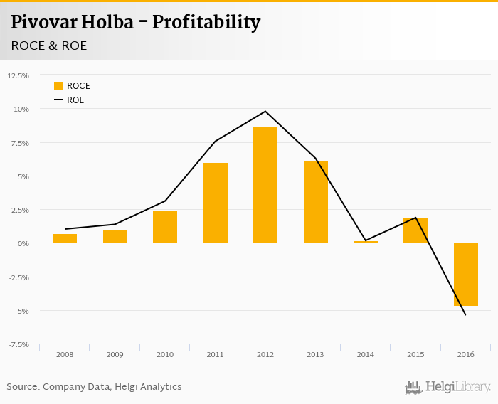 Pivovar Holba made a net profit of CZK -14.2 mil in 2016, down 344% compared to the previous year. Historically, between 2007 and 2016, the company's net profit reached a high of CZK 28.6 mil in 2012 and a low of CZK -14.2 mil in 2016.