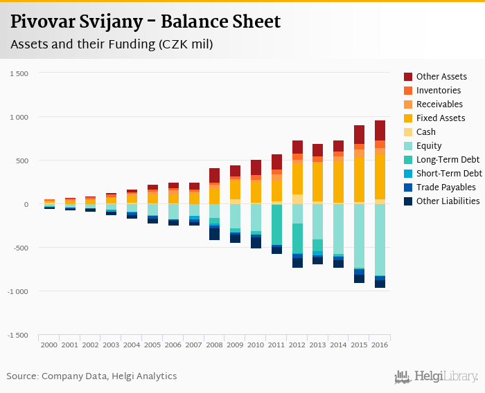 Pivovar Svijany's total assets reached CZK 963 mil at the end of 2016, up 6.74% compared to the previous year.