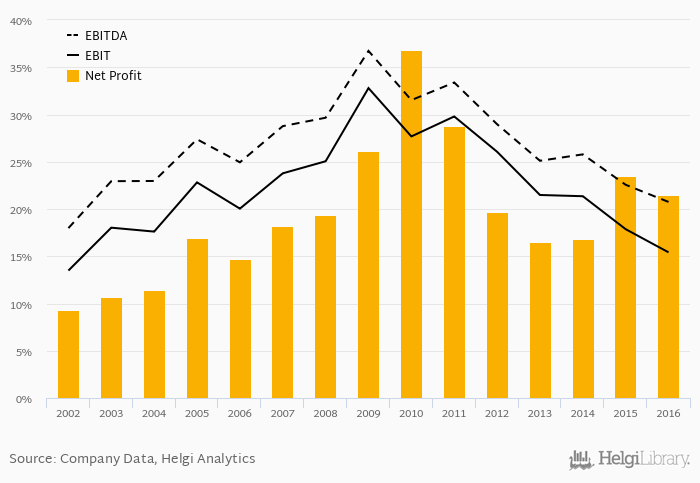 On the operating level, the EBITDA margin reached 20.7% and EBIT amounted to 15.4% of sales in 2016.