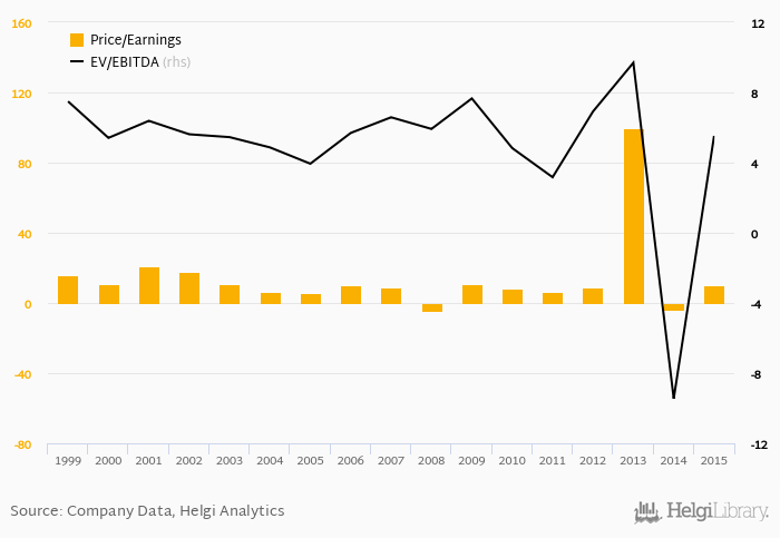 At the end of 2015, the firm traded at price to earnings of 10.2x. Over the last five years, this multiple achieved a high of 99.6x in 2013 and a low of -3.60x in 2014 with an average of 24.3x.