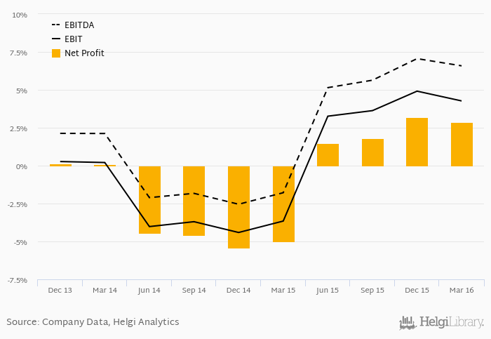On the operating level, the EBITDA margin reached 6.58% and EBIT amounted to 4.27% of sales in 1Q2016.