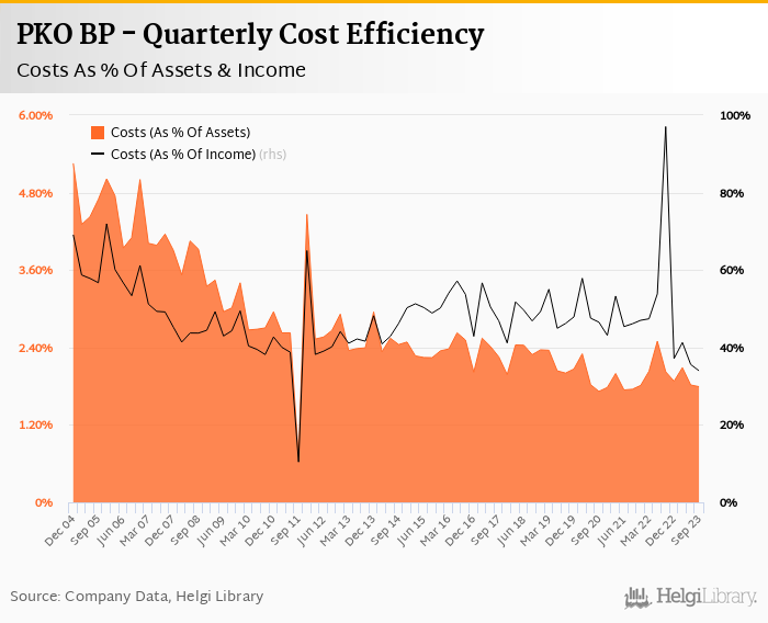 When compared to bank's main peers, Pekao operated in 3Q2023 with a cost to income ratio of 37.0% and ING Bank Slaski reached 38.5%.
