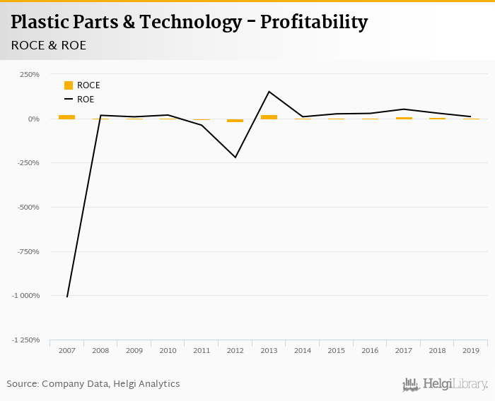 Plastic Parts & Technology made a net profit of CZK 6.91 mil in 2019, down 60.5% compared to the previous year. Historically, between 2005 and 2019, the company's net profit reached a high of CZK 20.7 mil in 2017 and a low of CZK -14.2 mil in 2012.