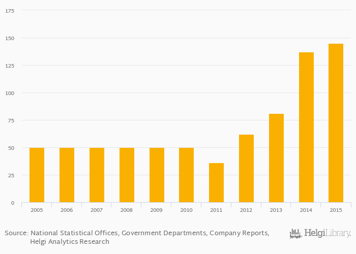 Historically, platinum group metals (mine) production in Poland reached an all time high of 145 kg in 2015 and an all time low of 36.0 kg in 2011.
