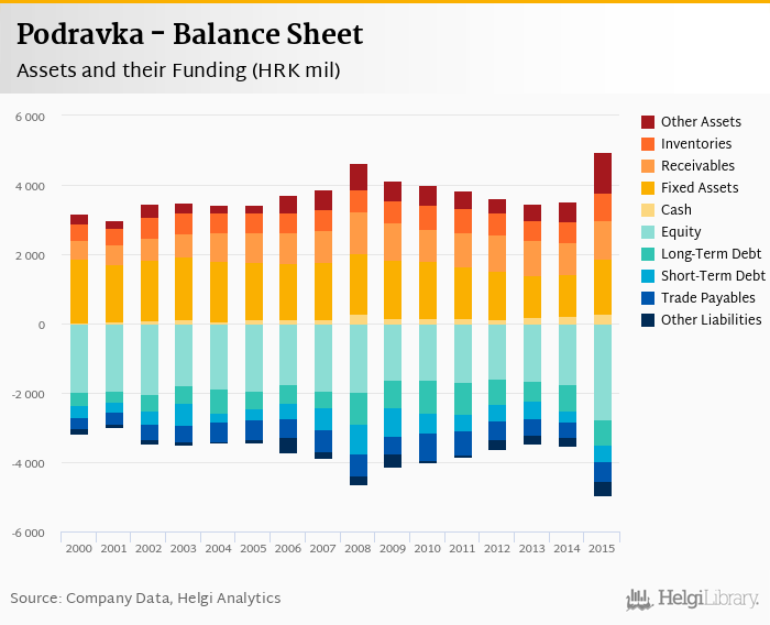 Podravka's total assets reached HRK 4,946 mil at the end of 2015, up 41% compared to the previous year.