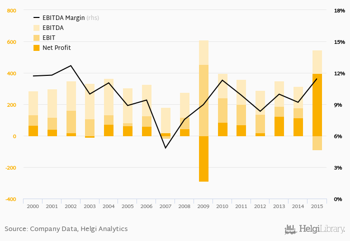 Historically, between 2000 - 2015, the firm’s net profit reached a high of HRK 398 mil in 2015 and a low of HRK -288 mil in 2009. Since 2010, the firm's net profit has increased 373% or 36.4% a year on average.