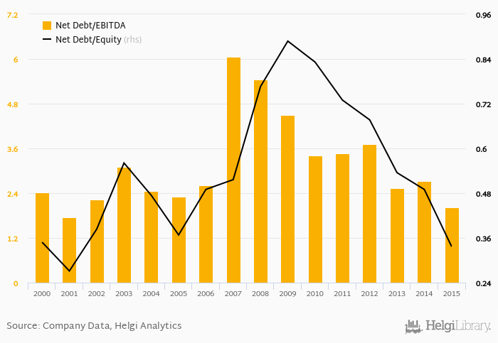 Historically, the firm’s net debt to equity reached a high of 0.888 in 2009 and a low of 0.271 in 2001 between 2000 and 2015. The average for the last five years was 0.554%.