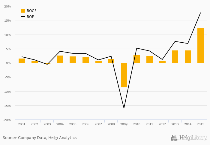 The result implies a return on equity of 17.7% and a return on invested capital of 12.3% in 2015. That is compared to an average of 7.47% and 4.82% over the last five years.
