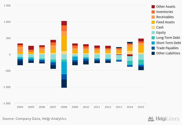 Net debt against equity is up 0.366 pp from five years ago (0.324). The ratio against EBITDA increased from 0.531x seen in 2010 to 1.88x.