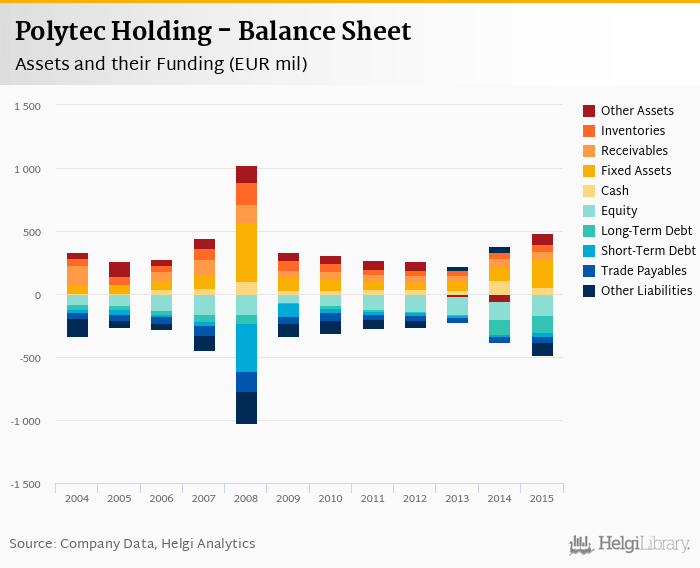 Polytec Holding's total assets reached EUR 485 mil at the end of 2015, up 72.4% compared to the previous year.