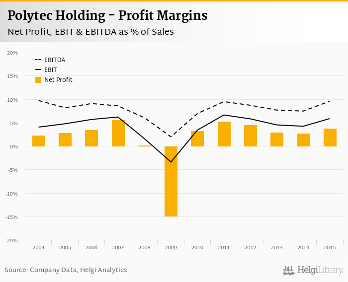 On the operating level, the EBITDA margin reached 9.54% and EBIT amounted to 5.84% of sales in 2015.