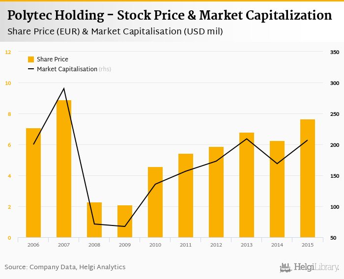 Polytec Holding stock traded at EUR 7.66 per share at the end 2015 implying a market capitalization of USD 207 mil.