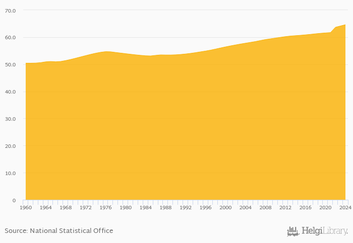 Population aged 15-64 years as a percentage of total population rose 0.736% to 64.6% in Lesotho in 2024, according to the National Statistical Office.
