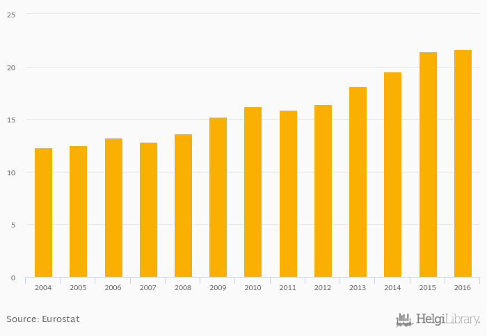 | Hungary | % | ... | ... | ... | ... | ... | ... | ... | ... | 17.9% | 19.0% | 20.3% | 20.8% | 21.7% | ||||||||