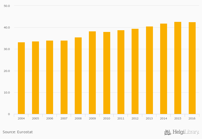 | Estonia | % | ... | ... | ... | ... | ... | ... | ... | ... | 38.0% | 38.8% | 39.5% | 40.6% | 41.9% | ||||||||