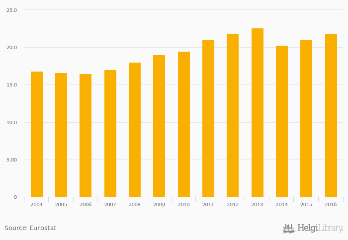 | Hungary | % | ... | ... | ... | ... | ... | ... | ... | ... | 18.6% | 19.8% | 21.1% | 21.6% | 22.5% | ||||||||