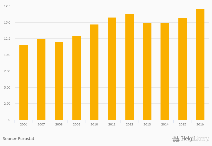 | Bulgaria | % | ... | ... | ... | ... | ... | ... | ... | ... | 15.9% | 16.2% | 16.7% | 17.9% | 18.8% | ||||||||