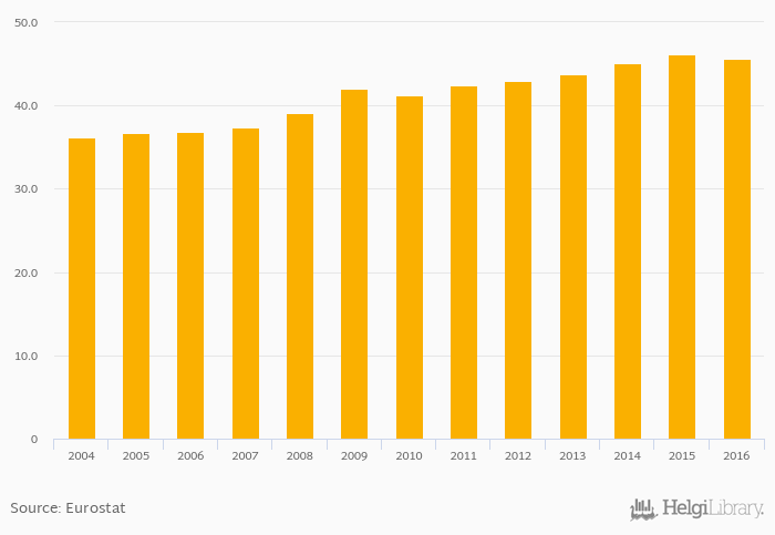 | Estonia | % | ... | ... | ... | ... | ... | ... | ... | ... | 41.2% | 42.4% | 42.9% | 43.8% | 45.1% | ||||||||