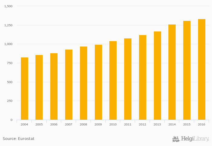 Population by Educational Attainment Level - From 25 to 74 years - Tertiary education (levels 5-8) - Total rose 1.78% to 1,333 '000 in Norway in 2016, according to Eurostat.