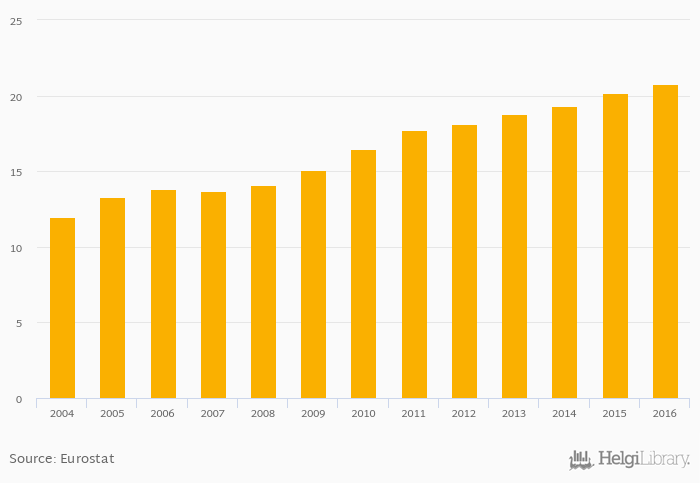 | Slovakia | % | ... | ... | ... | ... | ... | ... | ... | ... | 16.5% | 17.7% | 18.1% | 18.8% | 19.3% | ||||||||