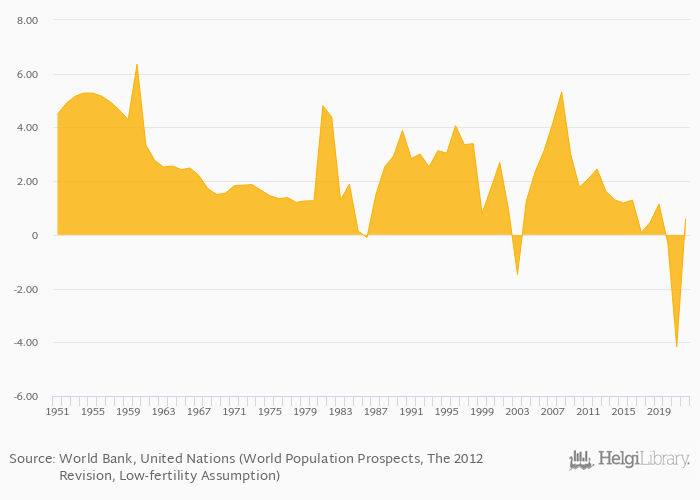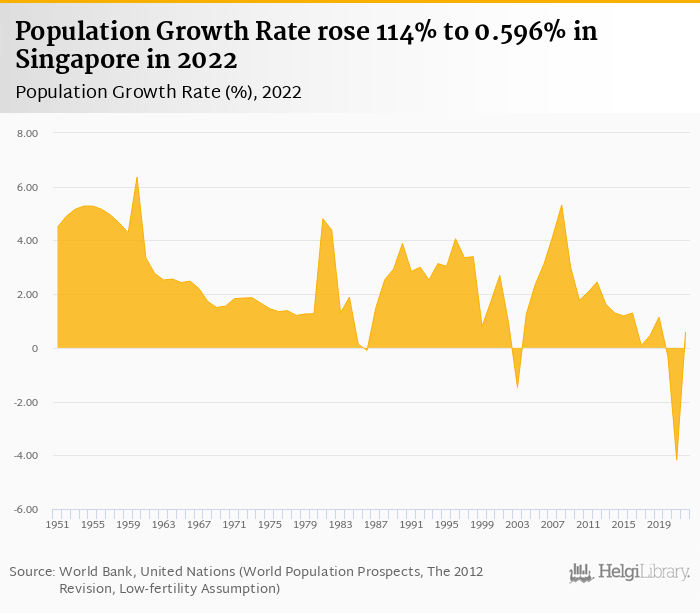 Population growth rate rose 114% to 0.596% in Singapore in 2022, according to the National Statistical Office.