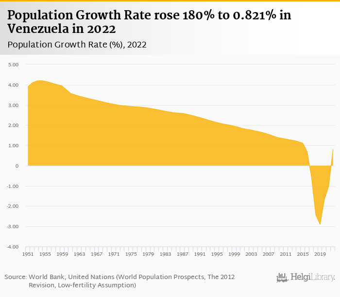 Population growth rate rose 180% to 0.821% in Venezuela in 2022, according to the National Statistical Office.