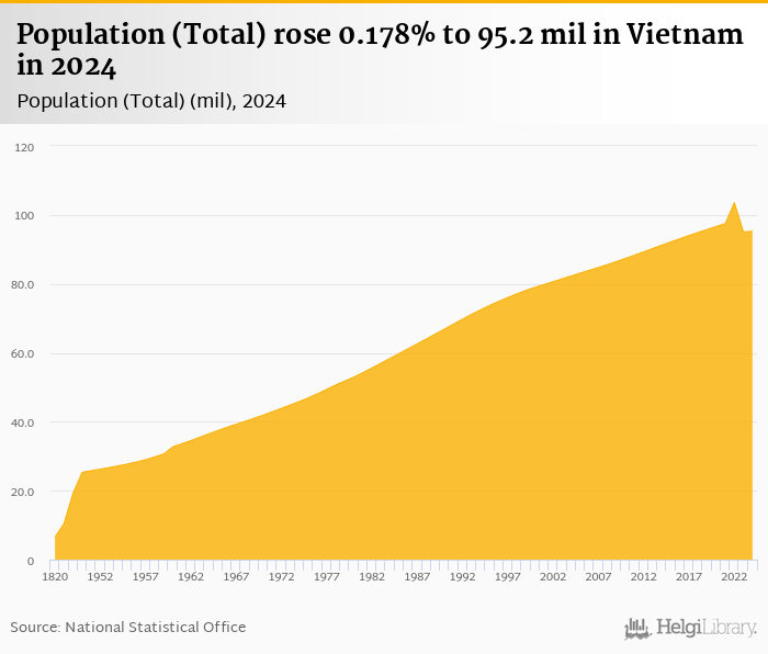Total population rose 0.178% to 95.2 mil in Vietnam in 2024, according to the National Statistical Office.