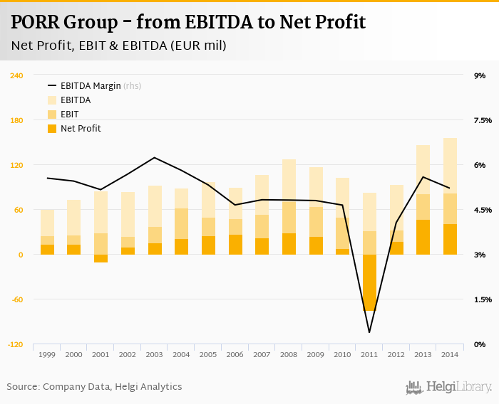 As far as PORR Group's peers are concerned, Wienerberger posted net and EBITDA margin of -9.23% and 11.1%, respectively in 2014, Strabag SE generated margins of 1.03% and 5.77%