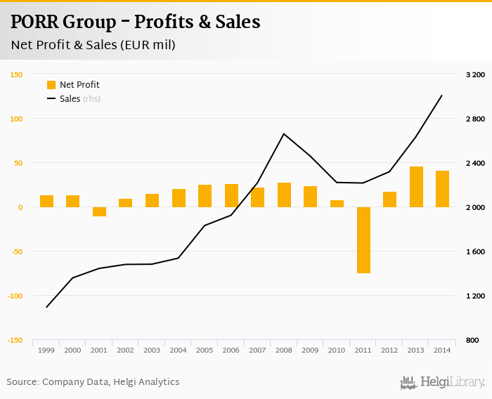 As far as PORR Group's peers are concerned, Wienerberger posted a net profit and sales of EUR -262 mil and EUR 2,835 mil in 2014, Strabag SE generated a net profit of EUR 128 mil (with sales of EUR 12,476 mil),