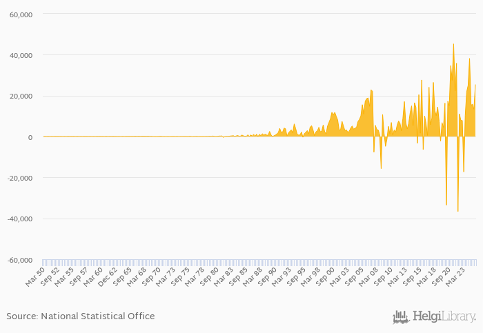 Historically, portfolio investments in Canada reached an all time high of USD 45,290 mil in 2Q2021 and an all time low of USD -36,680 mil in 1Q2022. When compared to Canada's main peers, portfolio investments in Australia amounted to USD 11,780 mil, USD 11,455 mil in Mexico, USD 95,645 mil in United Kingdom and USD 128,365 mil in USA in 1Q2025.