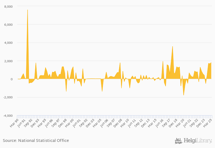 Portfolio investments rose 446% yoy to USD 1,806 mil in Argentina in 1Q2025, according to the National Statistical Office. This is 8.24% more than in the previous quarter.